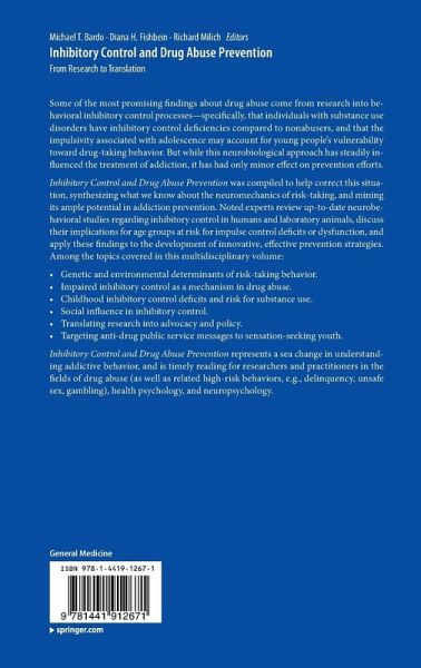 Controlled experiments utilizing neuroscience techniques in laboratory animals or neuroimaging techniques in humans have revealed that individual differences in prefrontal cortical regions may underlie, at least in part, these differences in inhibitory control. Although a few excellent journal reviews have been published on the role of inhibitory deficits in drug abuse, there has been relatively little attention paid to the potential applications of this work for drug abuse prevention. The current book will provide both basic and applied researchers with an overview of this important health-relevant topic. Since translational research cuts across multiple disciplines and most readers are not familiar with all of these disciplines, the reading level will be geared to be accessible to graduate students, as well as to faculty and researchers in the field.