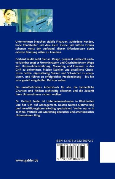 Gerhard Seidel setzt hier an. Knapp, prägnant und leicht nachvollziehbar zeigt er Firmeninhabern und Geschäftsführern Wege auf, Unternehmensführung, Marketing und Finanzen in den Griff zu bekommen. Präzise Tabellen und detaillierte Checklisten helfen, eigenständig Stärken und Schwächen zu analysieren und führen zu erfolgreicher Problemlösung - bis hin zum gezielt eingeholten Rat von außen.