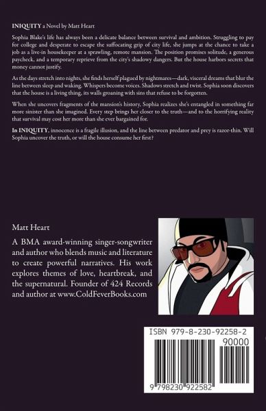 Sophia Blake's life has always been a delicate balance between survival and ambition. Struggling to pay for college and desperate to escape the suffocating grip of city life, she jumps at the chance to take a job as a live-in housekeeper at a sprawling, remote mansion. The position promises solitude, a generous paycheck, and a temporary reprieve from the city's shadowy dangers. But the house harbors secrets that money cannot justify. As the days stretch into nights, she finds herself plagued by nightmares-dark, visceral dreams that blur the line between sleep and waking. Whispers become voices. Shadows stretch and twist. Sophia soon discovers that the house is a living thing, its walls groaning with sins that refuse to be forgotten. When she uncovers fragments of the mansion's history, Sophia realizes she's entangled in something far more sinister than she imagined. Every step brings her closer to the truth-and to the horrifying reality that survival may cost her more than she ever bargained for. In INIQUITY, innocence is a fragile illusion, and the line between predator and prey is razor-thin. Will Sophia uncover the truth, or will the house consume her first?