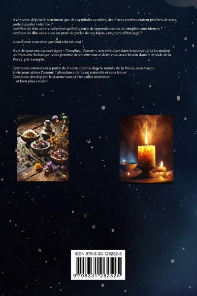 Initiation à la Wicca Le guide complet de la sorcellerie, des croyances, des traditions et des rituels de la magie wiccane pour le pratiquant solitaire (Sorts de bougies, herbes magiques, huiles et cristaux) Avez-vous déjà eu le sentiment que des symboles occultes, des forces secrètes étaient proches de vous, prêts à guider votre vie ? Combien de fois avez-vous pensé qu'il s'agissait d'une superstition ou d'une simple coïncidence ? Combien de fois avez-vous eu peur d'en parler, craignant d'être jugé ? Laissez-moi vous dire que tout cela est vrai ! Avec le nouveau manuel signé Templum Dianae , une référence dans le monde de la formation au bien-être holistique, vous pouvez découvrir tout ce dont vous avez besoin dans le monde de la Wicca comme par exemple Comment commencer à partir de 0 votre chemin dans le monde de la Wicca - sans risque Les sorts pour attirer l'amour, l'abondance naturellement et sans force Comment développer votre sixième sens et votre intuition intérieure