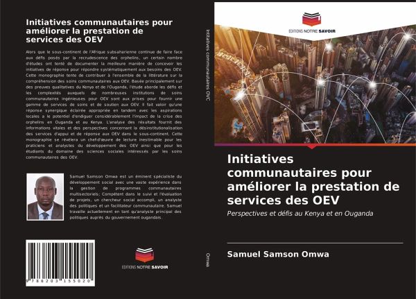 Alors que le sous-continent de l'Afrique subsaharienne continue de faire face aux défis posés par la recrudescence des orphelins, un certain nombre d'études ont tenté de documenter la meilleure manière de concevoir les initiatives de réponse pour répondre systématiquement aux besoins des OEV. Cette monographie tente de contribuer à l'ensemble de la littérature sur la compréhension des soins communautaires aux OEV. Basée principalement sur des preuves qualitatives du Kenya et de l'Ouganda, l'étude aborde les défis et les complexités auxquels de nombreuses institutions de soins communautaires ingénieuses pour OEV sont aux prises pour fournir une gamme de services de soins et de soutien aux OEV. Il fait valoir qu'une réponse synergique éclairée appropriée en tandem avec les aspirations locales a le potentiel d'endiguer considérablement l'impact de la crise des orphelins en Ouganda et au Kenya. L'analyse des résultats fournit des informations vitales et des perspectives concernant la désinstitutionalisation des services d'appui et de réponse aux OEV dans le sous-continent. Cette monographie se révélera un chef-d'oeuvre de lecture inestimable pour les praticiens et analystes du développement des OEV ainsi que pour les étudiants du domaine des sciences sociales intéressés par les soins communautaires des OEV.
