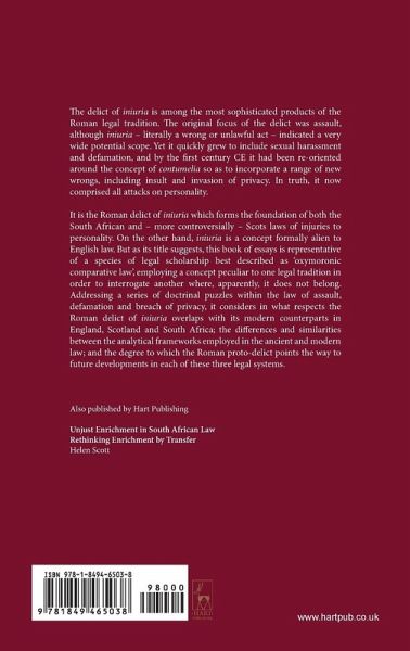 The delict of iniuria is among the most sophisticated products of the Roman legal tradition. The original focus of the delict was assault, although iniuria - literally a wrong or unlawful act - indicated a very wide potential scope. Yet, it quickly grew to include sexual harassment and defamation, and by the first century CE, it had been re-oriented around the concept of contumelia so as to incorporate a range of new wrongs, including insult and invasion of privacy. In truth, it now comprised all attacks on personality. It is the Roman delict of iniuria which forms the foundation of both South African and - more controversially - Scottish laws of injuries to personality. On the other hand, iniuria is a concept formally alien to English law. But, as this book's title suggests, the collection of essays are representative of a species of legal scholarship perhaps best described as 'oxymoronic comparative law, ' employing a concept peculiar to one legal tradition in order to interrogate another where, apparently, it does not belong. Addressing a series of doctrinal puzzles within the law of assault, defamation, and breach of privacy, the book considers in what respects the Roman delict of iniuria overlaps with its modern counterparts in England, Scotland, and South Africa. It also explores the differences and similarities between the analytical frameworks employed in the ancient and modern law, as well as the degree to which the Roman proto-delict points the way to future developments in each of these three legal systems. It is a unique study that will be of interest to tort lawyers and legal historians. (Series: Hart Studies in Private Law - Vol. 9