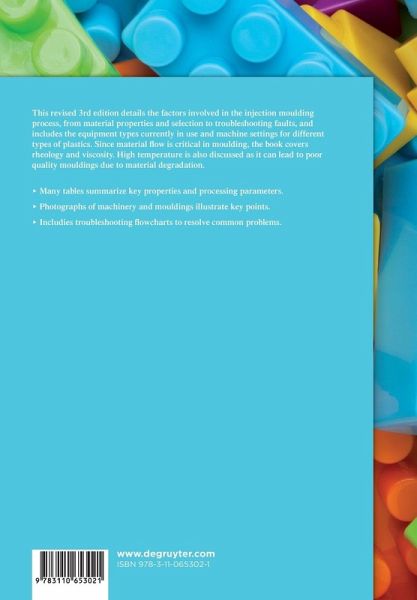 This revised 3rd edition details the factors involved in the injection moulding process, from material properties and selection to troubleshooting faults, and includes the equipment types currently in use and machine settings for different types of plastics. Since material flow is critical in moulding, the book covers rheology and viscosity. High temperature is also discussed as it can lead to poor quality mouldings due to material degradation.