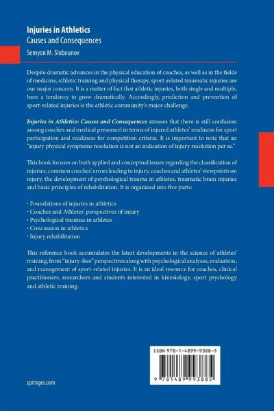 Foundations of Injury in Athletics.- Classification of Injuries in Athletics.- Science of Training and Injury in Athletics.- Balance as a Risk Factor for Athletic Injuries.- Fatigue-Related Injuries in Athletes.- Nutrition as a Risk Factor for Injury in Elite Athletes.- Coaches and Athletes' Perspectives of Injury.- Injury in Athletics: Coaches' Point of View.- Injury from Athletes' Perspectives.- Interviews with Injured Athletes.- Overuse Injuries: Students' Points of View.- Fitness Assessment in Athletes.- Psychological Traumas in Athletes.- Psychological Trauma: Unfortunate Experience in Athletics.- Fear as Adaptive or Maladaptive Form of Emotional Response.- Fear of Injury, Kinesiophobia & Perceived Risk.- Multiple Facets of Pain due to Injury.- Psychological Trauma: Case Studies.- Psychological Trauma: Age & Gender Factors.- Concussion in Athletes.- Concussion: Why Bother?.- Concussion Classification: Historical Perspectives and Current Trends.- Evaluation of Concussion: Signs and Symptoms.- Traumatic Brain Injuries in Children.- Injury Rehabilitation.- Integrated Injury Rehabilitation.- EEG & Neurofeedback in Rehabilitation.- Virtual Reality in Injury Rehabilitation.