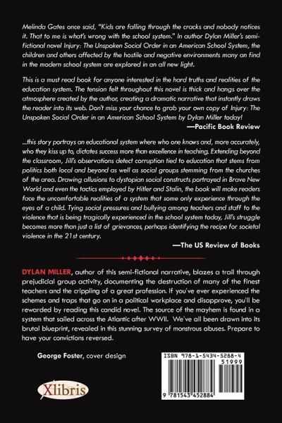 Dylan Miller, author of this semi-fictional narrative blazes a trail through prejudicial group activity, documenting the destruction of great teachers and the crippling of a profession. The main character, Jill Franklin, is retiring after thirty-two years as a teacher in Northwest Chicago schools. You'll follow her through her last year and encounter some outrageous antics that commonly occur within the school environment. If you have ever experienced the schemes and traps that go on in a political workplace and disapprove, you'll be rewarded by reading this candid novel. Many of the villains are punished and their victims become heroes by delivering some well deserved justice. Unfortunately, injustice is more common in the real world. Whenever people are allowed to get away with devious behavior, they will take advantage. Since unprofessionalism is systematically allowed---and encouraged--- by higher ups, we often see frenzied colleagues grouping together, eagerly debasing deliberately isolated individuals. Jill and her friends exchange stories demonstrating that predator teachers spend considerable time and effort clawing and bashing for their measure of clout within the system, which gives rise to the question: who are they to judge as they spend less concentration and energy on education? The author in this semi-fictional narrative has created a stunning portrayal of teachers mired in a hostile environment of political intrigue. Their savage stories will break your heart.