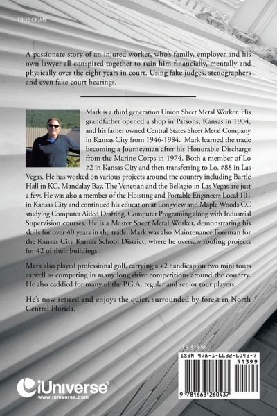 A passionate story of an injured worker, who's family, employer and his own lawyer all conspired together to ruin me financially, mentally and physically over the eight years in court. Using fake judges, stenographers and even fake court hearings.