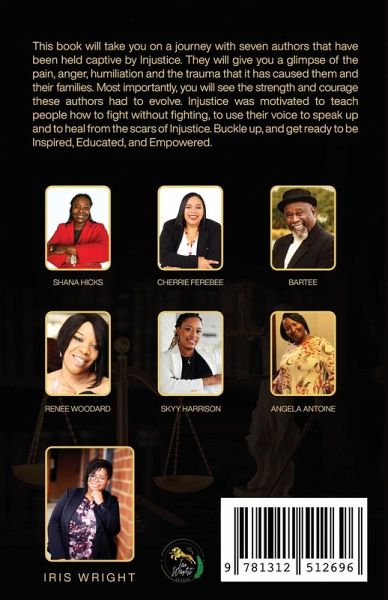 Injustice is an anthology of 6 phenomenal women and 1 man who was held captive by Injustice. They will give you a glimpse of the pain, anger, humiliation, and trauma that it has caused them and their families. Most importantly, you will see the strength and courage these authors had to evolve. Injustice was motivated to teach people how to fight without fighting, to use their voice to speak up, and to heal from the scars of Injustice. Contributing Authors: Iris Wright, Renee Woodard, Cherrie Ferebee, Shana Hicks, Angela Antoine, and Bartee.