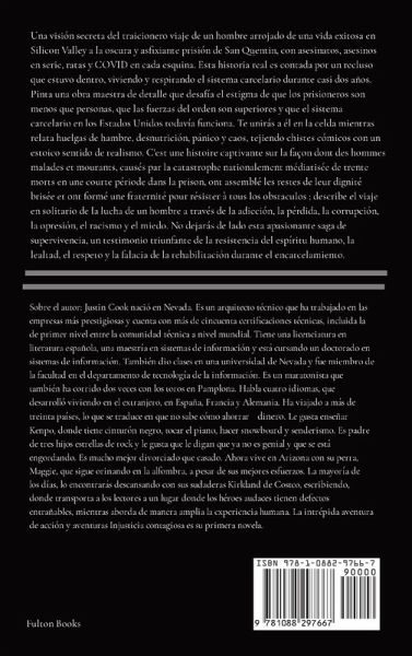 Una visión secreta del traicionero viaje de un hombre arrojado de una vida exitosa en Silicon Valley a la oscura y asfixiante prisión de San Quentin, con asesinatos, asesinos en serie, ratas y COVID en cada esquina. Esta historia real es contada por un recluso que estuvo dentro, viviendo y respirando el sistema carcelario durante casi dos años. Pinta una obra maestra de detalle que desafía el estigma de que los prisioneros son menos que personas, que las fuerzas del orden son superiores y que el sistema carcelario en los Estados Unidos todavía funciona. Te unirás a él en la celda mientras relata huelgas de hambre, desnutrición, pánico y caos, tejiendo chistes cómicos con un estoico sentido de realismo. C'est une histoire captivante sur la façon dont des hommes malades et mourants, causés par la catastrophe nationalement médiatisée de trente morts en une courte période dans la prison, ont assemblé les restes de leur dignité brisée et ont formé une fraternité pour résister à tous los obstaculos ; describe el viaje en solitario de la lucha de un hombre a través de la adicción, la pérdida, la corrupción, la opresión, el racismo y el miedo. No dejarás de lado esta apasionante saga de supervivencia, un testimonio triunfante de la resistencia del espíritu humano, la lealtad, el respeto y la falacia de la rehabilitación durante el encarcelamiento.