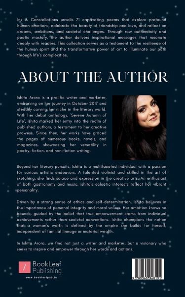 "Ink & Constellations" unveils 21 captivating poems that explore profound human emotions, celebrate the beauty of friendship and love, and reflect on dreams, ambitions, and societal challenges. Through raw authenticity and poetic mastery, the author delivers inspirational messages that resonate deeply with readers. This collection serves as a testament to the resilience of the human spirit and the transformative power of art to illuminate our path through life's complexities.