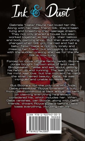 Gabriela "Gabs" Rayne had loved her life. Along with her best friend Silk, they'd been living and breathing their teenage dream. They not only shared a house but also worked together at Silky Ink, their tattoo and body piercing shop. But then everything changed when Silk got married and had a baby. Now, Gabs is not only lonely and missing her friend, but struggling to cope with the sudden craving she has for the life Silk is now living. Forced to move off the family ranch, Boone Jones bought his own slice of land near Bridgewater, Texas and set about getting his ranch up and running. The last thing on his mind was love, but the moment he met the silver haired beauty, Gabs, he was intrigued and unable to resist her. But Boone's not the only one who finds Gabs irresistible. Royce Emerson, a bully from Gabs' childhood is back and is hell bent on claiming everything he's always considered his, which includes her. When Gabs vanishes, can Boone, along with Gabs' friends, thwart Royce's plans before Gabs loses everything, including her life?