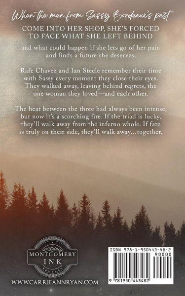 When the men from Sassy Bordeaux's past come into her shop, she's forced to face what she left behind and what could happen if she lets go of her pain and finds a future she deserves.Rafe Chavez and Ian Steele remember their time with Sassy every moment they close their eyes. They walked away, leaving behind regrets, the one woman they loved-and each other.The heat between the three had always been intense, but now it's a scorching fire. If the triad is lucky, they'll walk away from the inferno whole. If fate is truly on their side, they'll walk away...together.