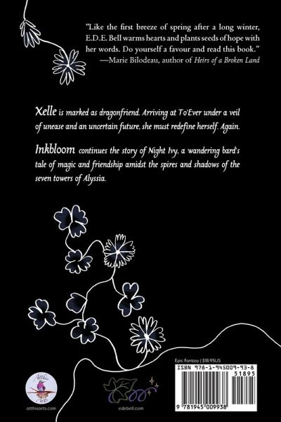 Xelle is marked as dragonfriend. Arriving at To'Ever under a veil of unease and an uncertain future, she must redefine herself. Again. Inkbloom continues the story of Night Ivy, a wandering bard's tale of magic and friendship amidst the spires and shadows of the seven towers of Alyssia.