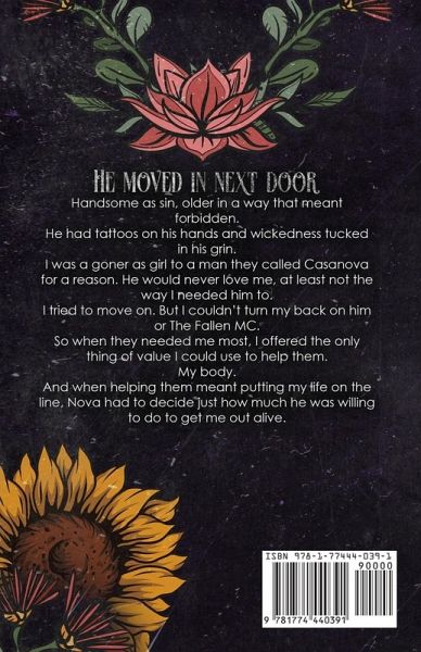 ¿NOW A TOP 100 AMAZON BESTSELLER¿ From USA Today and Wall Street Journal Bestselling author Giana Darling comes a new friends-to-lovers, MC romance about the asshole biker next-door and the girl who loves him... He moved in next door. Handsome as sin, older in a way that meant forbidden. He had tattoos on his hands and wickedness tucked in his grin. I was a goner as girl to a man they called Casanova for a reason. He would never love me, at least not the way I needed him to. I tried to move on. But I couldn't turn my back on him or The Fallen MC. So when they needed me most, I offered the only thing of value I could use to help them. My body. And when helping them meant putting my life on the line, Nova had to decide just how much he was willing to do to get me out alive. A standalone friends-to-lovers age-gap romance in The Fallen Men series.