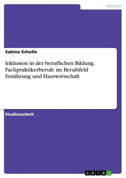 Studienarbeit aus dem Jahr 2019 im Fachbereich Gesundheit - Ernährungswissenschaft, Note: 1,3, Fachhochschule Münster, Sprache: Deutsch, Abstract: Welche Chancen und Grenzen bieten Fachpraktikerberufe im Berufsfeld EuH im Kontext von Inklusion? Mit der Ratifizierung der UN-Behindertenkonvention im Jahr 2009 erhielt der Inklusionsbegriff einen rechtsverbindlichen Charakter. Unterschiedliche gesellschaftliche Barrieren sollen abgebaut werden, die Behinderung und Benachteiligung begünstigen bzw. vergrößern. Bildungsgerechtigkeit und Chancengleichheit sollen Menschen mit Behinderung die gesellschaftliche Teilhabe durch eine Berufsausbildung ermöglichen. Fachpraktikerausbildungen nach § 66 BBiG/§ 42m HwO sind spezielle Ausbildungen für Menschen mit Behinderung, die im Berufsfeld Ernährung und Hauswirtschaft stark nachgefragt werden. Zunehmend wird in Frage gestellt, ob dieses Ausbildungskonzept die Anforderungen eines inklusiven Bildungssystems erfüllen kann. Fachpraktikerausbildungenbieten im Berufsfeld Ernährung und Hauswirtschaft Menschen mit Behinderung eine Berufsausbildung mit Perspektiven auf dem Arbeitsmarkt. Jedoch erfordert die Realisierung einer inklusiven beruflichen Bildung eine Verbesserung struktureller und rechtlicher Rahmenbedingungen.