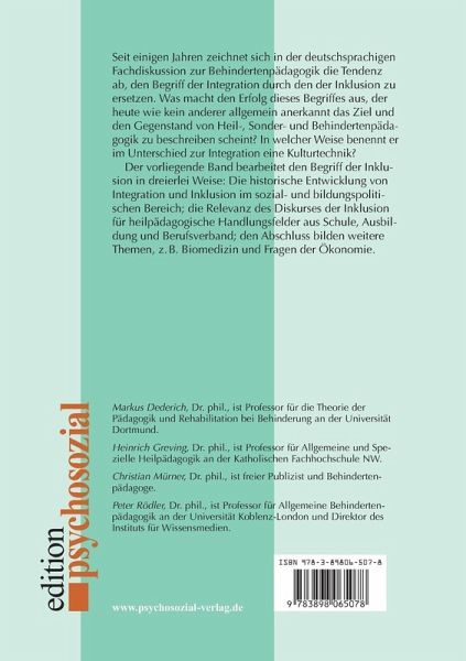 Seit einigen Jahren zeichnet sich in der deutschsprachigen Fachdiskussion zur Behindertenpädagogik die Tendenz ab, den Begriff der Integration durch den der Inklusion zu ersetzen. Was macht den Erfolg dieses Begriffes aus, der heute wie kein anderer allgemein anerkannt das Ziel und den Gegenstand von Heil-, Sonder- und Behindertenpädagogik zu beschreiben scheint? In welcher Weise benennt er im Unterschied zur Integration eine Kulturtechnik?