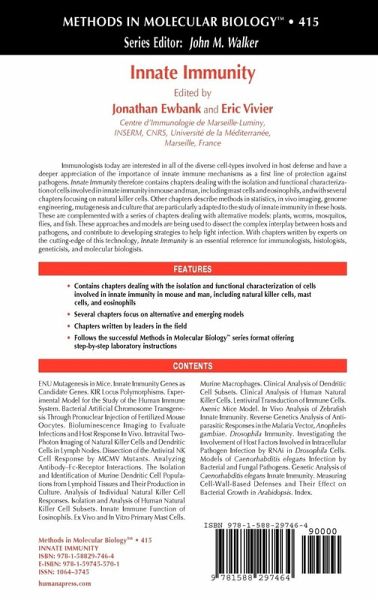 Immunologists today are interested in all of the diverse cell-types involved in host defense and have a deeper appreciation of the importance of innate immune mechanisms as a first line of protection against pathogens. This volume thus discusses the isolation and functional characterization of cells involved in innate immunity in mouse and man, including mast cells and eosinophils. Other focuses include natural killer cells, methods in statistics, in vivo imaging, genome engineering, and mutagenesis and culture that are adapted to the study of innate immunity in these hosts. These are complemented with a series of chapters dealing with alternative models: plants, worms, mosquitoes, flies, and fish. Together, these approaches and models are being used to dissect the complex interplay between hosts and pathogens and contribute to developing strategies to help fight infection. With chapters written by experts on the cutting-edge of this technology, Innate Immunity is an essential reference for immunologists, histologists, geneticists, and molecular biologists.