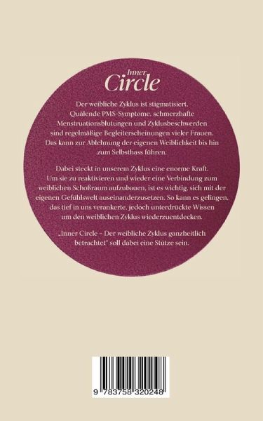 Der weibliche Zyklus ist stigmatisiert. Quälende PMS-Symptome, schmerzhafte Menstruationsblutungen und Zyklusbeschwerden sind regelmäßige Begleiterscheinungen vieler Frauen. Das kann zur Ablehnung der eigenen Weiblichkeit bis hin zum Selbsthass führen. Dabei steckt in unserem Zyklus eine enorme Kraft. Um sie zu reaktivieren und wieder eine Verbindung zum weiblichen Schoßraum aufzubauen, ist es wichtig, sich mit der eigenen Gefühlswelt auseinanderzusetzen.So kann es gelingen, das tief in uns verankerte, jedoch unterdrückte Wissen um den weiblichen Zyklus wiederzuentdecken. INNER CIRCLE - DER WEIBLICHE ZYKLUS GANZHEITLICH BETRACHTET soll dabei eine Stütze sein.