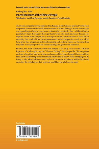 Chinese Feeling: The Insight into the Changeable of Chinese Mentality.- From Tradition to Modern.- The Transition of Chinese Values.- The Pursuit of Happiness.- Developments in Consumerism.- New Trends in Emotions and Interpersonal Relationships.- Trust: From a Society of Acquaintances to a Society of Strangers.- From Wire to Wireless: The Transformation of Communication Psychology.- The Re-alteration of Intergenerational Relationships.- Attitudes to Love and Romance.- Restraint and Pleasure: The Chinese Sexual Revolution.- The Death and Rebirth of Class Consciousness.- The Logic of Collective Action.- Civic consciousness and Social Participation.- Facing the Future, or Remodeling the Chinese Mentality.
