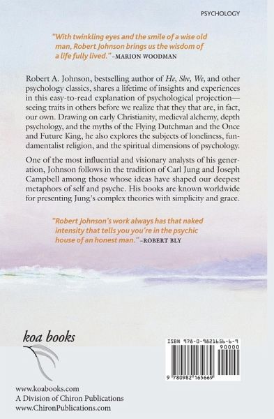 Robert A. Johnson, bestselling author of He, She, We, and other psychology classics, shares a lifetime of insights and experiences in this easy-to-read explanation of psychological projection — seeing traits in others that are, in fact, our own. He masterfully reveals how each of us gives up our "inner gold" to those whom we idealize or are attracted to. Each one of us must learn the arduous task of "taking back" this gold as we move through life’s journey. Drawing on early Christianity, medieval alchemy, depth psychology, and the myths of "The Flying Dutchman" and "The Once and Future King," he also explores the subjects of loneliness, fundamentalist religion, and the spiritual dimensions of psychology. One of the most influential and visionary analysts of his generation, Johnson follows the tradition of Carl Jung and Joseph Campbell among those whose ideas have shaped our deepest metaphors of self and psyche. His books are known worldwide for presenting Jung’s complex theories with the simplicity and grace. With twinkling eyes and the smile of a wise old man, Robert Johnson brings us the wisdom of a life fully lived….The healing power of Robert's writing is palpable. - Marion Woodman Robert Johnson’s work always has that naked intensity that tells you you’re in the psychic house of an honest man. - Robert Bly
