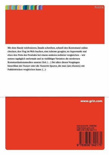 Studienarbeit aus dem Jahr 2012 im Fachbereich Politik - Internationale Politik - Thema: Frieden und Konflikte, Sicherheit, Universität Leipzig, Sprache: Deutsch, Abstract: Mit dem Handy telefonieren, Emails schreiben, schnell den Kontostand online checken, den Flug im Web buchen, eine Adresse googlen, im Supermarkt mal eben den Preis des Produkts bei einem anderen Anbieter vergleichen - wir nutzen tagtäglich mehrmals und in vielfältiger Variation die modernen Kommunikationsmedien unserer Zeit.[...]Bei allen diesen Vorgängen hinterlässt der Nutzer oder die Nutzerin Spuren, die man (am ehesten) mit Fußabdrücken vergleichen kann. [...]Da in vielen Bereichen des heutigen Lebens moderne Kommunikationsmittel eingesetzt werden, ist es unweigerlich so, dass man mit ihnen in Kontakt kommt - und in irgendeiner Art und Weise die eigenen Spuren hinterlässt.Auch der Staat ist von dieser neuen, veränderten Lage und den gewandelten Bedingungen betroffen. So will er seine Aufgaben - zu denen u.a. die Herstellung Innerer Sicherheit zählt - erfüllen und muss seine Arbeitsweisen abändern und anpassen, um diesem Auftrag gerecht zu werden. Im Hinblick auf moderne Kommunikationsmedien wurden in den letzten Monaten und Jahren diverse neue Wege beschritten. Zu nennen sind hier beispielsweise Gesetze und Verfahren zur Vorratsdatenspeicherung, zur Quellen-Telekommunikationsüberwachung sowie die zur Funkzellenüberwachung bzw. Funkzellenauswertung. Aktuell stellen die modernen Kommunikationsmedien einen neuen Raum dar, für den noch keine umfassenden Regelungen und Erfahrungen existieren.Die Frage zur Vereinbarkeit und Balance von Freiheit einerseits und Sicherheit andererseits in ihrem Spannungsfeld ist nicht neu.[...]Der Staat verletzt die Freiheit für die Schaffung innerer Sicherheit im Bereich der modernen Kommunikationsmittel in starkem Maße; der dabei erzielte Gewinn an innerer Sicherheit steht zu den verwendeten Mitteln in keinem Verhältnis.
