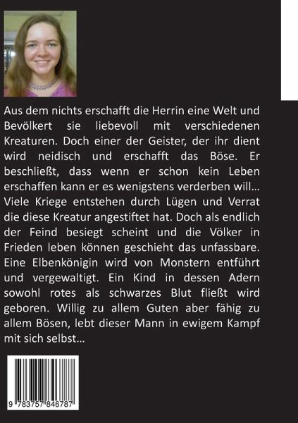 Aus dem nichts erschafft die Herrin eine Welt und Bevölkert sie liebevoll mit verschiedenen Kreaturen. Doch einer der Geister, der ihr dient wird neidisch und erschafft das Böse. Er beschließt, dass wenn er schon kein Leben erschaffen kann er es wenigstens verderben will. Viele Kriege entstehen durch Lügen und Verrat die diese Kreatur angestiftet hat. Doch als endlich der Feind besiegt scheint und die Völker in Frieden leben können geschieht das unfassbare. Eine Elbenkönigin wird von Monstern entführt und vergewaltigt. Ein Kind in dessen Adern sowohl rotes als schwarzes Blut fließt wird geboren. Willig zu allem Guten aber fähig zu allem Bösen, lebt dieser Mann in ewigem Kampf mit sich selbst...