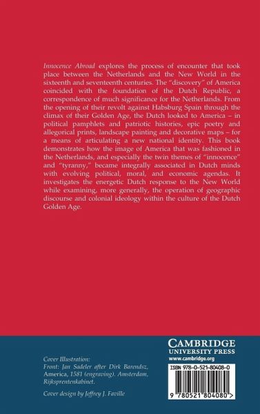 Innocence Abroad explores the process of encounter that took place between the Netherlands and the New World in the sixteenth and seventeenth centuries. The 'discovery' of America coincided with the foundation of the Dutch Republic, a correspondence of much significance for the Netherlands. From the opening of their Revolt against Hapsburg Spain through the climax of their Golden Age, the Dutch looked to America - in political pamphlets and patriotic histories, epic poetry and allegorical prints, landscape painting and decorative maps - for a means of articulating a new national identity. This book demonstrates how the image of America fashioned in the Netherlands, and especially the twin themes of 'innocence' and 'tyranny', became integrally associated with the evolving political, moral and economic agenda. It investigates the energetic Dutch response to the New World while examining the operation of geographic discourse and colonial ideology within the culture of the Dutch Golden Age.