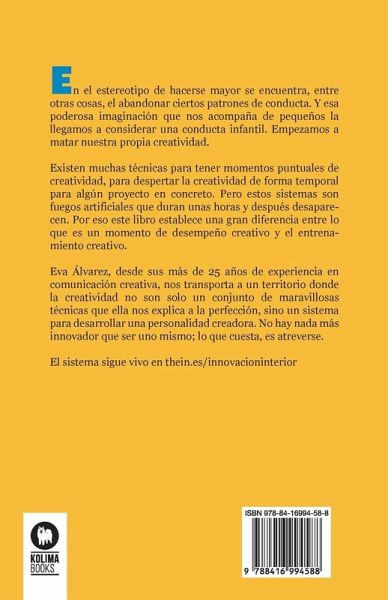 En el estereotipo de hacerse mayor se encuentra, entre otras cosas, el abandonar ciertos patrones de conducta. Y esa poderosa imaginación que nos acompaña de pequeños la llegamos a considerar una conducta infantil. Empezamos a matar nuestra propia creatividad. Existen muchas técnicas para tener momentos de creatividad puntuales, para despertar la creatividad de forma temporal para algún proyecto en concreto. Pero desde mi experiencia, estos sistemas son fuegos artificiales que duran unas horas y después desaparecen. Por eso este libro establece una gran diferencia entre lo que es un momento de desempeño creativo y el entrenamiento creativo.