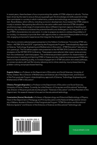In recent years, there has been a focus on promoting the uptake of STEM subjects in schools. This has been driven by the need to ensure that young people gain the knowledge and skills essential to help them participate in a society in which mathematics, science and technology are increasingly important. Nevertheless, reform efforts, including curriculum development, have treated the STEM subjects mostly in isolation. Recognizing that efforts for education within each individual STEM discipline would encourage a wide range of conservations about different important aspects of teaching and learning, this conference considered the potential benefits and challenges for the integration of various STEM's characteristics into education. In order to prepare students to address the problems of our society, it is necessary to provide them with opportunities to understand these problems through rich, engaging and powerful experiences that integrate the disciplines of STEM. ¿¿This volume contains selected papers presented at the Hellenic Conferences "Innovating STEM education -HiSTEM 2016 and 2018" organized by the Postgraduate Program "Interdisciplinary Approach on Science, Technology, Engineering and Mathematics in Education -STEM Education" (stemeducation.upatras.gr). The first eleven papers were presented at the HiSTEM 2016 Conference and the last six papers at the HiSTEM 2018 Conference. These papers were selected after a peer review process from the conferences' submitted papers. The conferences provided a platform for dissemination of best practices in teaching and learning STEM in Greece and also inspired and empowered STEM educators to improve teaching quality, to increase engagement in STEM education and career pathways, to connect students with real life industry relevancy and to drive creativity, inquiry-based learning, problem-solving and project-based learning.