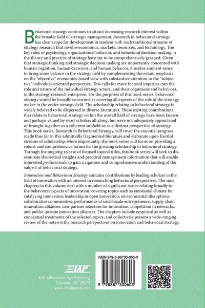 Behavioral strategy continues to attract increasing research interest within the broader field of strategic management. Research in behavioral strategy has clear scope for development in tandem with such traditional streams of strategy research that involve economics, markets, resources, and technology. The key roles of psychology, organizational behavior, and behavioral decision making in the theory and practice of strategy have yet to be comprehensively grasped. Given that strategic thinking and strategic decision making are importantly concerned with human cognition, human decisions, and human behavior, it makes eminent sense to bring some balance in the strategy field by complementing the extant emphasis on the "objective" economics-based view with substantive attention to the "subjective" individual-oriented perspective. This calls for more focused inquiries into the role and nature of the individual strategy actors, and their cognitions and behaviors, in the strategy research enterprise. For the purposes of this book series, behavioral strategy would be broadly construed as covering all aspects of the role of the strategy maker in the entire strategy field. The scholarship relating to behavioral strategy is widely believed to be dispersed in diverse literatures. These existing contributions that relate to behavioral strategy within the overall field of strategy has been known and perhaps valued by most scholars all along, but were not adequately appreciated or brought together as a coherent sub-field or as a distinct perspective of strategy. This book series on Research in Behavioral Strategy will cover the essential progress made thus far in this admittedly fragmented literature and elaborate upon fruitful streams of scholarship. More importantly, the book series will focus on providing a robust and comprehensive forum for the growing scholarship in behavioral strategy. In particular, the volumes in the series will cover new views of interdisciplinary theoretical frameworks and models (dealing with all behavioral aspects), significant practical problems of strategy formulation, implementation, and evaluation, and emerging areas of inquiry. The series will also include comprehensive empirical studies of selected segments of business, economic, industrial, government, and non-profit activities with potential for wider application of behavioral strategy. Through the ongoing release of focused topical titles, this book series will seek to disseminate theoretical insights and practical management information that will enable interested professionals to gain a rigorous and comprehensive understanding of the subject of behavioral strategy. Innovation and Behavioral Strategy contains contributions by leading scholars in the field of innovation with an interest in researching behavioral perspectives. The 9 chapters in this volume deal with a number of significant issues relating broadly to the behavioral aspects of innovation, covering topics such as emotional climate for catalyzing innovation, leadership in open innovation, environmental disruptions, collaborative communities, performance of small-scale entrepreneurs, supply chain innovation alliances, new partner selection for innovation, coopetition in networks, and public-private innovation alliances. The chapters include empirical as well as conceptual treatments of the selected topics, and collectively present a wide-ranging review of the noteworthy research perspectives on innovation and behavioral strategy.
