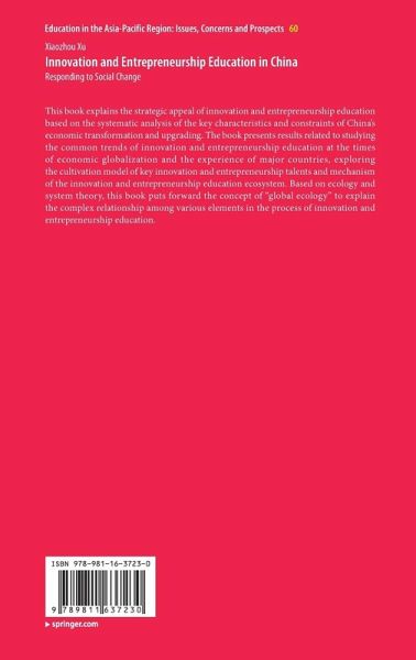"Responding to Social Change: Innovation and Entrepreneurship Education in China is a systematic study of the concept ... which is significant for educational reform and social change. ... this book forms a systematic study on China's IEE precisely in terms of its concept, international comparisons, the cultivation of key entrepreneurial talents, the construction of entrepreneurial ecosystem and institutional safeguards ... . In a word, this book has significant theoretical value and practical significance ... ." (Zengyu Jiang, Entrepreneurship Education, Vol. 5 (2), 2022)