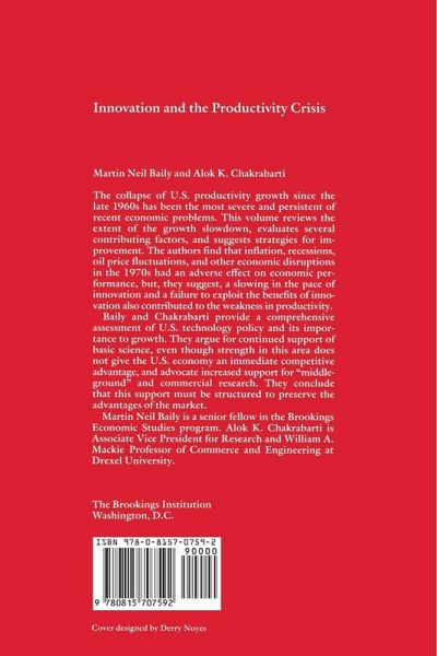 " The collapse of U.S. productivity growth since the late 1960s has been the most severe and persistent of recent economic problems. This volume reviews the extent of the growth slowdown, evaluates several contributing factors, and suggests strategies for improvement. The authors find that inflation, recessions, oil price fluctuations, and other economic disruptions in the 1970s had an averse effect on economic performance, but, they suggest, a slowing in the pace of innovation and a failure to exploit the benefits of innovation also contributed to the weakness in productivity. Baily and Chakrabarti provide a comprehensive assessment of U.S. technology policy and its importance to growth. They argue for continued support of basic science, even though strength in this area does not give the U.S. economy an immediate competitive advantage, and advocate increased support for ""middle ground"" and commercial research. They conclude that this support must be structured to preserve the advantages of the market."