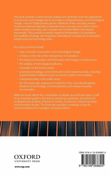 This book presents a reader-friendly analysis and synthesis of the key economic and management approaches to innovation, entrepreneurship, and technological change. Link and Siegel provide precise definitions of key concepts, present numerous historical examples to illustrate these concepts, outline a framework for analyzing key topics, compare and contrast different theoretical frameworks, provide a reader-friendly interpretation of quantitative and qualitative findings, and emphasize international comparisons of innovation infrastructure and technology policy. Key topics covered include: · basic concepts of innovation and technological change, · a history of the role of the entrepreneur in innovation, · the impact of innovation and information technology on performance, · the analysis of technological spillovers, · innovation in the service sector, · university technology commercialization and entrepreneurship, including property-based institutions such as research parks and incubators, · entrepreneurship in the public sector, · the first systematic analysis and synthesis of the new interdisciplinary literature on technology commercialization and entrepreneurship at universities. While the book reflects the complexities of debate around these topics, it will be an important guide to the area for academics, graduate, and advanced undergraduate students of Business Studies, Economics, Entrepreneurship, and Innovation Studies. The book also provides a roadmap of specific recommendations for managers and policymakers.