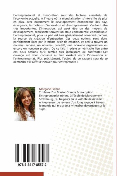 L entrepreneuriat et l innovation sont des facteurs essentiels de l économie actuelle. A l heure où la mondialisation s intensifie de plus en plus, avec notamment le développement économique des pays émergents, les notions d innovation et d entrepreneuriat s avèrent être très importantes. L innovation, qui peut être un des moyens de développement, représente souvent un atout concurrentiel considérable. L entrepreneuriat, pour sa part est très généralement considéré comme la source de création d entreprise. Ces deux notions sont donc parfaitement liées par le même désir de création, et ceci à travers un nouveau service, un nouveau procédé, une nouvelle organisation ou encore un nouveau produit. De ce fait, il existe un véritable lien entre ces deux notions qu il semble très intéressant de confronter. Cet ouvrage est donc consacré au lien existant entre l innovation et l entrepreneuriat. Plus précisément, l objet, de ce rapport sera de se demander s il suffit d innover pour entreprendre ?