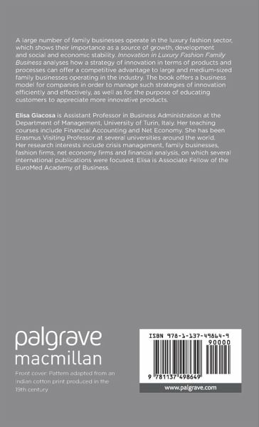 A large number of family businesses operate in the luxury fashion sector which shows their importance as a source of growth, development and social and economic stability. This book analyses how a strategy of innovation in terms of products and processes can offer a competitive advantage to family businesses operating in the luxury fashion sector.