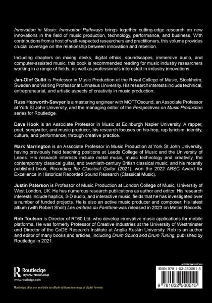 Innovation in Music: Innovation Pathways brings together cutting-edge research on new innovations in the field of music production, technology, performance, and business. With contributions from a host of well-respected researchers and practitioners, this volume provides crucial coverage on the relationship between innovation and rebellion.