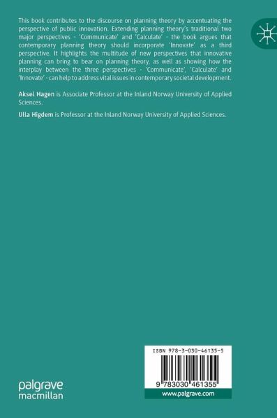 This book contributes to the discourse on planning theory by accentuating the perspective of public innovation. Extending planning theory's traditional two major perspectives - 'Communicate' and 'Calculate' - the book argues that contemporary planning theory should incorporate 'Innovate' as a third perspective. It highlights the multitude of new perspectives that innovative planning can bring to bear on planning theory, as well as showing how the interplay between the three perspectives - 'Communicate', 'Calculate' and 'Innovate' - can help to address vital issues in contemporary societal development.