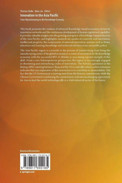 This book promotes the creation of advanced knowledge-based economies driven by innovation networks and the continuous development of human capital and capability. It provides valuable insights into the growing emergence of knowledge-based industries of the Asia Pacific, and highlights research on: modes of creativity and innovation; intellectual property; the components of national innovation systems such as firms, education and training; knowledge and technical infrastructure; and public policy.