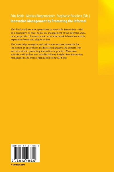 This book explores new approaches to successful innovation - with all uncertainty. Its focal points are management of the informal and a new perspective of human work: innovation work is based on artistic, experience-based and playful action. The book helps recognize and utilize new success potentials for innovation in enterprises. It addresses managers and experts who are interested in promoting innovation in practice. Moreover, scientists will gather new interdisciplinary insights into innovation management and work organization from this book.