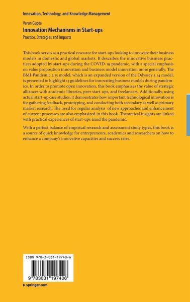 Innovation Mechanisms in Start-ups: Practice, Strategies and Impacts serves as a practical resource for startups looking for innovating their business models in domestic and global markets. This book's main objective is to describe the innovative business practices adopted by startups during the pandemic, with a special emphasis on value proposition innovation and business model innovation more generally. In order to promote open innovation, this book emphasizes the value of strategic alliances with academic libraries, peer startups, and freelancers. Additionally, using actual startup case studies, it was shown how important technological innovation is for gathering feedback, prototyping, and conducting both secondary as well as primary market research. Startups can utilize the technology evaluation and adoption frameworks as a useful reference when choosing a technology to embrace strategically. The need of regularly experimenting with new approaches, learning from mistakes,and enhancing current processes is also emphasized in this book. The ability to dispel falsehoods, capitalize on technological advancements, and form strategic alliances will be essential for innovation even in times of pandemic. This book links theoretical insights with practical experiences of startups amid the pandemic. With a perfect balance of empirical research and assessment study types, this book is a source of quick knowledge for entrepreneurs, academics and researchers on how to enhance a company's innovative capacities and success rates. The BMI-Pandemic 2.15 model, which is an expanded version of the Odyssey 3.14 model, is presented in this book which highlight 15 guidelines to follow in order to innovate business models in pandemics. This book is suitable for Entrepreneurs, Academicians, Researcher and Technologists.
