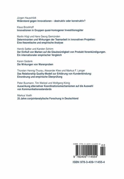 Die Aufsätze enthalten originelle Lösungen zu neuen Themen wie Produktvorankündigung, Warenproben und Kundenbindung. Neue Lösungen zu bekannten Problemen sind Widerstände gegen Innovationen und ihre Überwindung, Teamarbeit sowie die generelle Bildung von Kommunikationsstandards.