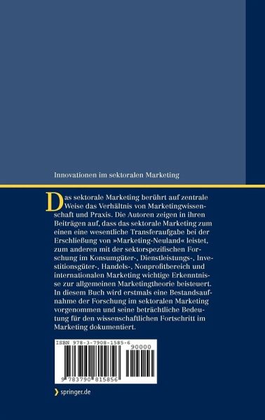 Sektorales Marketing - Impulsgeber für Wissenstransfer und Innovation im Marketing.- Marketing Fast Moving Consumer Goods - Der Nukleus der sektoralen Sichtweise.- Handel im Spannungsfeld von Marketing, Distribution und Kooperation.- Investitionsgütermarketing bzw. Business-to-Business Marketing - Zentrale Erklärungs- und Managementansätze.- Dienstleistungsmarketing - Entwicklung und künftige Perspektiven.- Internationales Marketing - Entwicklung, Status und Trends.- Entwicklungen und Trends im Nonprofit-Marketing.- Marketing für Klein- und Mittelbetriebe - Spezifische Betrachtungslinien im Objektbereich.- Heuristiken in der Produktpolitik.- Zur qualitativen Konsumentenforschung.- Daten- und Messäquivalenz in der internationalen Marktforschung.- Kundenbindung bei elektronischen Geschäftsbeziehungen.- Formalisierung qualitativer internationaler Marketingforschung - Grundsätze und Anwendungsfall.- Management von Marketingevent-Projekten.- Marketing für den Immobilien-Bereich - Ein Plädoyer für alternative Ansätze.- BauMax: Profilierung im "Do-It-Yourself"-Handel durch professionelle Kommunikationspolitik.- Wie innovative Marken Märkte gestalten - Das Beispiel Nescafé.- Pricing-Strategien in hochkompetitiven Märkten - Eine Case Study aus der Mobilfunkbranche in Österreich.- Location Based Services - Geschäftsmodelle und Einsatzfelder.- Transaktionsfernsehen.- Erlebniswelten als innovatives Instrument des Kulturmarketing.- Codico: Mit Fokussierung und Kundennähe zum Erfolg in der Distribution von elektronischen Bauelementen.