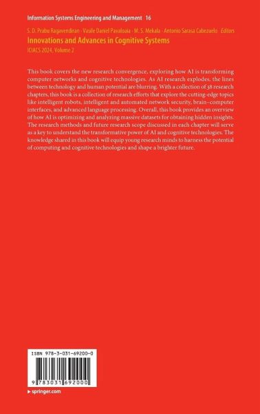This book covers the new research convergence, exploring how AI is transforming computer networks and cognitive technologies. As AI research explodes, the lines between technology and human potential are blurring. With a collection of 38 research chapters, this book is a collection of research efforts that explore the cutting-edge topics like intelligent robots, intelligent and automated network security, brain-computer interfaces, and advanced language processing. Overall, this book provides an overview of how AI is optimizing and analyzing massive datasets for obtaining hidden insights. The research methods and future research scope discussed in each chapter will serve as a key to understand the transformative power of AI and cognitive technologies. The knowledge shared in this book will equip young research minds to harness the potential of computing and cognitive technologies and shape a brighter future.
