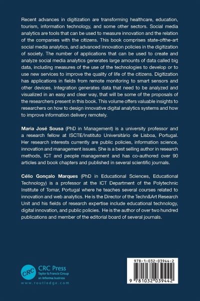 Maria José Sousa (PhD in Management) is a university professor with Habilitation and a research fellow at ISCTE/Instituto Universitário de Lisboa. Her research interests currently are public policies, information science, innovation and management issues. She is a best selling author in research methods, ICT and people management and has co-authored over 90 articles and book chapters and published in several scientific journals (i.e. Journal of Business Research, Information Systems Frontiers, European Planning Studies, Systems Research e Behavioral Science, Computational and Mathematical Organization Theory, Future Generation Computer Systems, and others), she has also organized and peer-reviewed international conferences and is the guest-editor of more than 5 Special Issues from Elsevier and Springer. She has participated in several European projects of innovation transfer and is also External Expert of COST Association - European Cooperation in Science and Technology. Célio Gonçalo Marques is a professor at the Information and Communication Technologies (ICT) Department of the Polytechnic Institute of Tomar (Portugal). He is also the Director of the Laboratory of Pedagogical Innovation and Distance Learning and the President of the Technical and Scientific Council of the Tomar Business School. He holds a degree in Computer Science and Management, a MSc in Educational Multimedia Communication, a post-graduation in e-Learning Techniques and Contexts and a PhD in Educational Sciences, with specialization in Educational Technology. He is the Director of the Techn&Art Research Unit and his fields of research expertise include educational technology, digital innovation, and public policies. He is the author of over two hundred national and international publications and is a member of the editorial board of several journals, as well as the member of organizing committees of various international conferences. He participated in numerous projects related to ICT and has provided computer consulting to several companies. He is member of the Association for the Promotion and Development of the Information Society (APDSI), the Europeana Network Association, the Educational Technology Laboratory (University of Coimbra, Portugal) and the Center for Administration and Public Policy (University of Lisbon, Portugal).