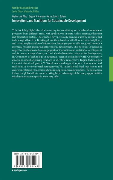 This book highlights the vital necessity for combining sustainable development processes from different areas, with applications in areas such as science, education and production sectors. These sectors have previously been separated by linguistic and technological barriers. Breaking down these barriers will allow an interdisciplinary and transdisciplinary flow of information, leading to greater efficiency, and towards a more real resilient and sustainable economy development. This book fills in the gap in respect of publications addressing aspects of innovation and sustainable development and focuses on a range of areas, such as I. Gradual transition to innovative development; II. Continuity of technology in education, science and industry; III. Convergency directions, interdisciplinary relations in scientific research; IV. Digital technologies for sustainable development; V. Global trends and regional aspects of innovation and traditions in environmental management; VI.International legal regulations and environmental and economic relations among business communities. The publication fosters the global efforts towards taking better advantage of the many opportunities which innovation in specific areas may offer.