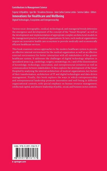 This book examines various approaches to the modern healthcare system to provide an effective internal environment for the medical organization as well as an effective external environment for better interaction with all stakeholders of the greater healthcare system. It addresses the challenges of digital technology adoption in specialized areas (e.g., cardiology, surgery, neonatology, etc.) and of the dissemination of knowledge, technology, innovation, and entrepreneurial initiatives as well as communication between stakeholders. It then explores the development of the Smart Hospital by analyzing the internal architecture of medical organizations, key factors of their transformation, architecture of IT and digital technologies and data-driven management. Finally, this book explores the ways in which entrepreneurship and entrepreneurial leadership promote innovation and well-being in different organizational contexts, with special emphasis on human resource management, intellectual capital, and abusive leadership of public, social, and business sector contexts.