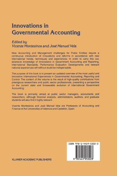 New Accounting and Management challenges for Public Entities require a continuous introduction of innovations and reforms in accordance with new international trends, techniques and experiences. In order to carry this out, extensive knowledge of Innovations in Government Accounting and Reporting, International Standards, Performance Evaluation Developments and relevant national experiences will without doubt be indispensable. The purpose of this book is to present an updated overview of the most useful and innovative International Experiences in Governmental Accounting, Reporting and Control. The content of the volume is the result of high-quality contributions from prestigious researchers and public sector professionals, presenting a perspective on the current state and foreseeable evolution of International Government Accounting. The book is primarily aimed at public sector managers, accountants and researchers, although financial analysts, administrators, auditors, and graduate students will also find it highly relevant.