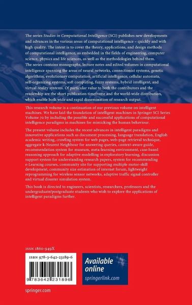 This research volume is a continuation of our previous volume on intelligent machines. We have laid the foundation of intelligent machines in Springer SCI Series Volume 70 by including the possible and successful applications of computational intelligence paradigms in machines for mimicking the human behaviour.