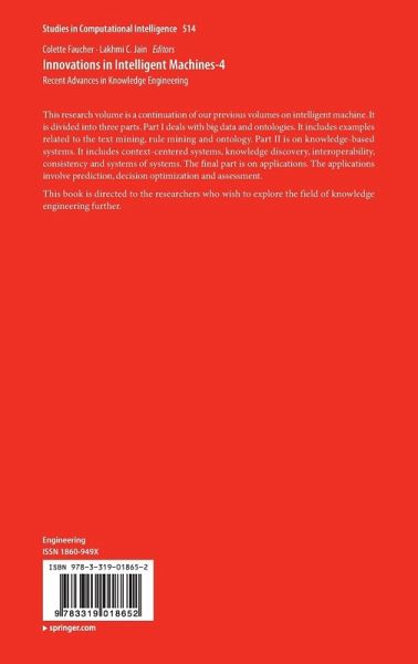 This research volume is a continuation of our previous volumes on intelligent machine. It is divided into three parts. Part I deals with big data and ontologies. It includes examples related to the text mining, rule mining and ontology. Part II is on knowledge-based systems. It includes context-centered systems, knowledge discovery, interoperability, consistency and systems of systems. The final part is on applications. The applications involve prediction, decision optimization and assessment.
