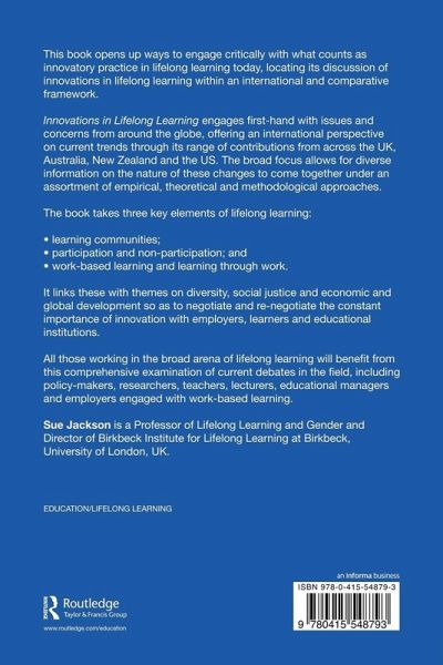 This book opens up ways to engage critically with what counts as innovatory practice in lifelong learning today, locating its discussion of innovations in lifelong learning within an international and comparative framework.