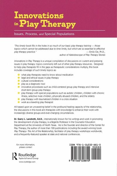 "Throughout the book, case examples with dialogue are given to bring the innovations to life. Supporting research and recommendations based on the author's practical experience give the book added credibility. Although this book is best suited for individuals witha solid understanding of play therapy theory and procedures, I would highly recomment it for both play therapist in training and the experience play therapist. Readers will be refreshed and equipped withplay therapy innovations for the 21st century." -- Jennifer Baggerly, PH.D., LMHC